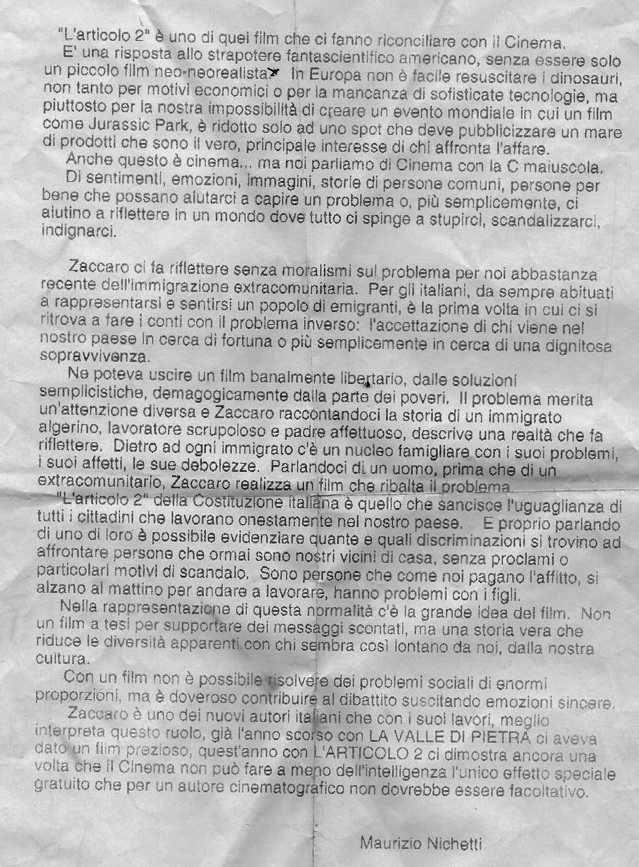 PREMIO SOLINAS 1991 PER LA MIGLIORE SCENEGGIATURA ORIGINALE.-
