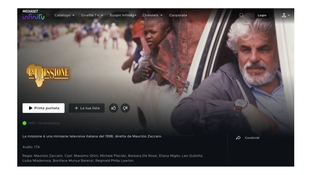 Visibile integralmente qui: https://mediasetinfinity.mediaset.it/fiction/lamissione_SE000000002264