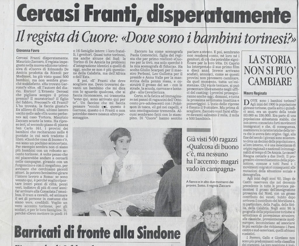“Perché sei qui? ” Una piccola domanda ripetuta migliaia di volte a tutti i bambini (quasi tremila) che si presentavano all’appuntamento con il casting, a Torino. . “Per il film del libro Cuore”.
