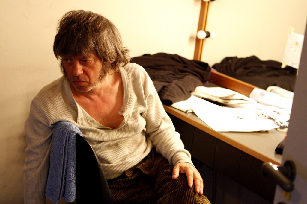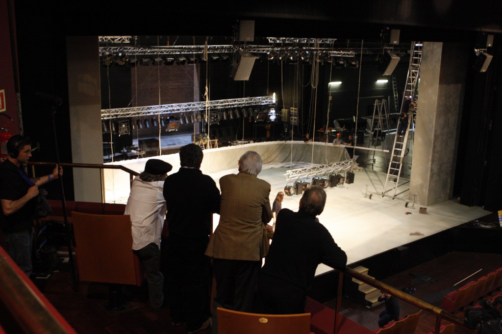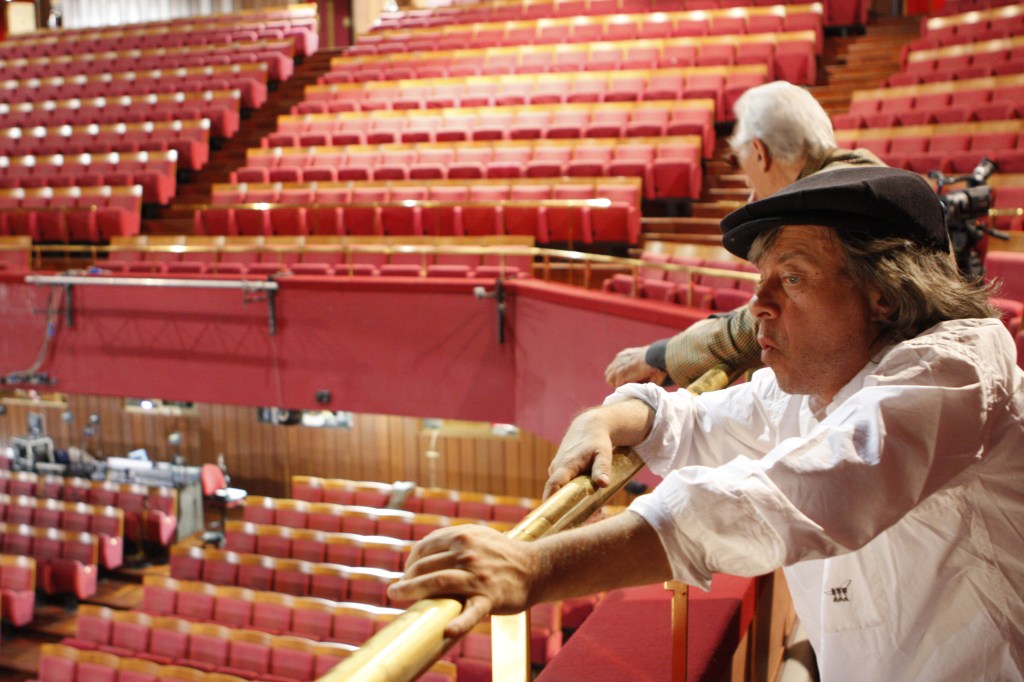 Due oggetti di identificazione: il teatro e Milano. Il Piccolo, teatro d’Europa sempre vitale anche oggi, grazie soprattutto al continuo scambio fra le realtà più significative del teatro europeo e quelle nazionali, è i suoi spettacoli e le sue pareti, i suoi costumi, è la sua storia e quindi, non a caso, nella passeggiata tra i suoi anfratti, Gullotta su un telo di nylon, sulla porta di un sottoscala, rivede Marcello Moretti nell’Arlecchino, Strehler e Franciaroli, rivede immagini delle decine di spettacoli che vivono ancora tra le mura che li hanno messi in scena “perché il cibo per la mente vive nei teatri e ovunque si capisca l’importanza della cultura tanto bistrattata oggi” precisa il regista che ricorda come l’investimento pubblico complessivo dell’Italia sia da sempre ridicolo (0,3% del fus!) e come sia vergognoso che un ministro della Repubblica abbia affermato “meglio un piatto di polenta che la cultura”.