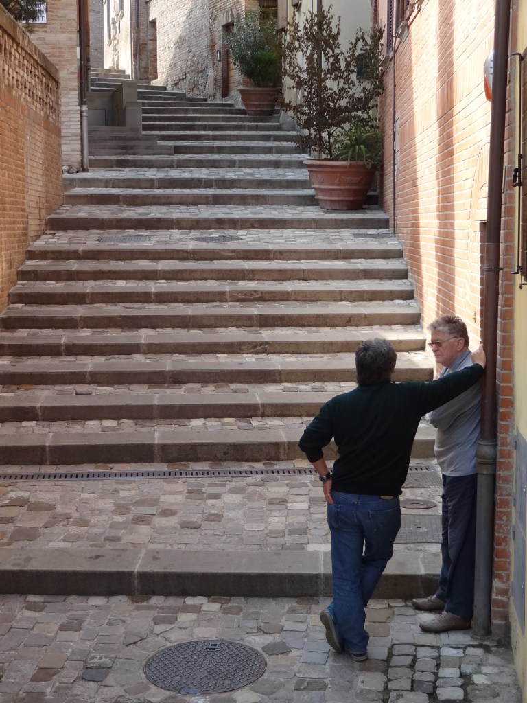 “Arrivati in cima, lo spettacolo del tramonto con gli ultimi raggi del sole che illuminavano i ruderi della fortezza e, più giù, una distesa di colline brulle come solo la Toscana sa offrire, toglieva letteralmente il fiato”.