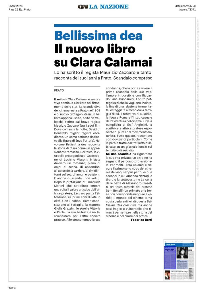 “Bellissima Dea. La storia di Clara Calamai” (Beautiful Goddess. The story of Clara Calamai) is now available in all bookshops and online stores.