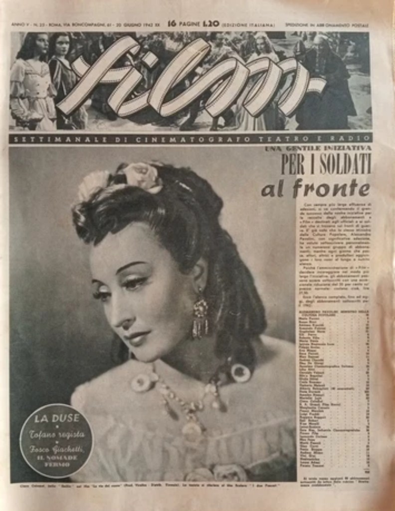 It took more than two years to complete this book, but I must say that it was time well spent, alternating between writing and researching sources, watching her countless films, at least those that can still be found (others are unfortunately considered lost, such as Duilio Coletti’s L’adultera (The Adulteress) – 1946 – and Pietro Micca – 1938 – by Aldo Vergano, or difficult to find as “Amanti senza amore” (Lovers without love) – 1948 – by Gianni Franciolini) and above all to meetings with those who knew Clara Calamai and frequented her, either for family reasons, such as her nephew Marino Bonizzato, or professional reasons, such as costume designer Aldo Buti.