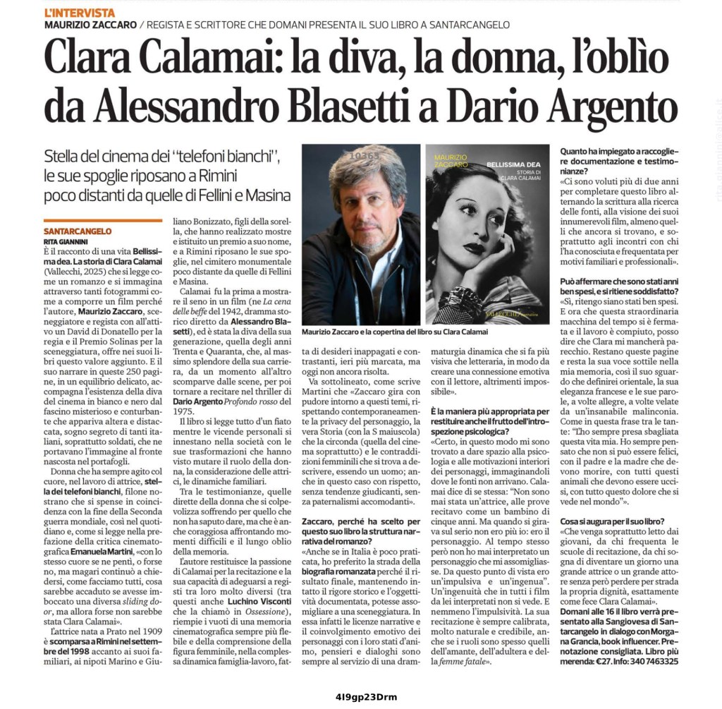 “Bellissima dea. Storia di Clara Calamai” è un romanzo necessario, elegante e doloroso, che restituisce dignità a una figura centrale della storia culturale italiana. Maurizio Zaccaro compie un’operazione preziosa: non riscrive solo una biografia, ma interroga il nostro modo di guardare, desiderare, dimenticare. Iniziare l’anno con questo libro significa scegliere di ascoltare una voce rimossa, di fare spazio a una memoria scomoda ma indispensabile. Perché le vere dee, spesso, non abitano l’Olimpo: bruciano, cadono, e continuano a parlarci dal silenzio.