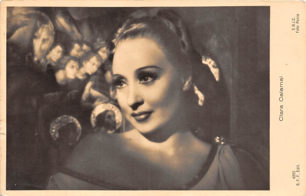 “One of the most admired actresses of the cinema of the white telephones: a popularity achieved thanks to her measured acting and her mysterious and provocative charm. Haughty, aloof, sometimes a little cold, Clara Calamai, playing courtesans and lovers with class and voluptuousness, achieved enormous popularity, beloved by male audiences for whom she represented the ideal of the true femme fatale.”