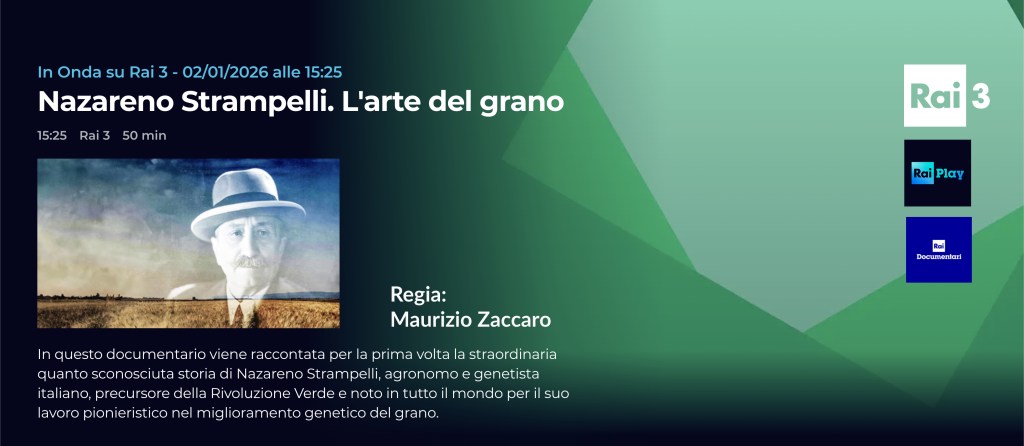È andato in onda nel pomeriggio di oggi, venerdì 2 gennaio 2026, su Rai 3, il docufilm “Nazareno Strampelli – L’arte del grano”, firmato dal regista Maurizio Zaccaro, un’opera intensa e rigorosa che restituisce centralità a una delle figure più influenti – e ancora poco conosciute – della storia dell’agricoltura italiana e mondiale. Il documentario, ora disponibile in streaming su RaiPlay, racconta la vicenda umana e scientifica di Nazareno Strampelli, agronomo e genetista considerato il padre del miglioramento genetico del grano e precursore della Rivoluzione Verde, capace di cambiare per sempre il destino della cerealicoltura mondiale.