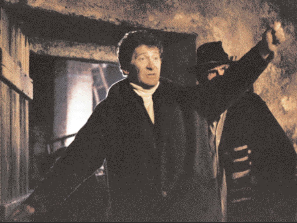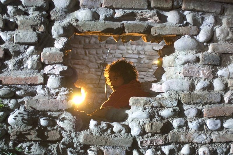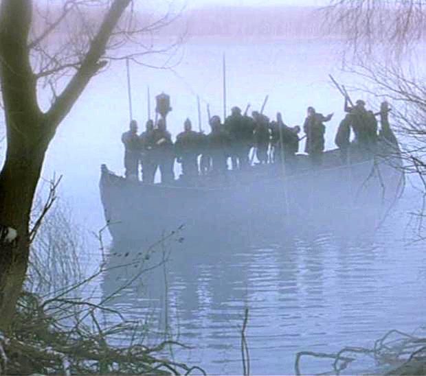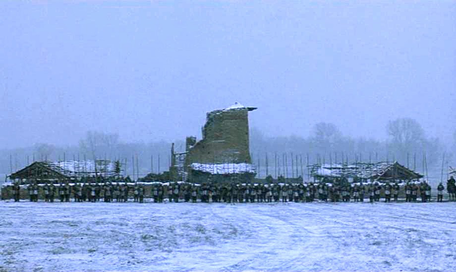 The Germans hide their four cannons behind the ruins of an old brick-kiln and wait for Joanni and his Bands to fall into their trap. Following the hoofprints which the enemy deliberately leaves on the freshly fallen snow, Joanni once more sets off after Frundsberg. When he reaches the brick-kiln he finds the German soldiers already lined up, waiting for him. General Frundsberg sits on his horse dangling his infamous golden rope, from which he intends to hang the Pope. After a violent battle, Joanni orders his men to retreat. But no sooner has he turned his horse around than a deafening boom drowns out the noise of shouting and clashing metal. Joanni is so surprised to find the Germans have artillery that he slows his horse. When he starts riding again, a fourth cannon shot hits him in the right leg.