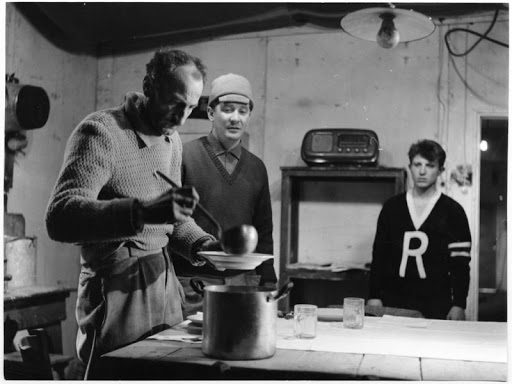 “Durante l’inverno, presso una grande diga vicino all’Adamello sono rimasti soltanto due guardiani. Uno di loro scende a valle: lo dovrebbe sostituire un compagno che, improvvisamente, in seguito alla nascita di un figlio, è costretto a ritornare a casa. Il suo posto viene preso da Roberto, un giovane studente che ha accettato di andare lassù, dove avrà tutto il tempo di prepararsi per gli esami. I rapporti tra lo studente e Natale, il rude montanaro di cui è divenuto il collega, sono sulle prime caratterizzati da un certo imbarazzo; ma a poco a poco l’atmosfera si sgela e Natale è felice di insegnare al giovane sprovveduto quello che lui ha imparato dall’esperienza della vita. Quando i disagi a cui Roberto non è abituato e la troppa solitudine gli provocano degli accessi di febbre, è proprio Natale a curarlo amorevolmente. Quella vita serena, a stretto contatto con la natura, lontano dalle raffinatezze e dal tumulto della civiltà, tra le candide distese nevose e così vicini alle cime delle montagne, in un silenzio assoluto, interrotto soltanto dalle loro voci: tutto questo dà veramente l’impressione che il tempo si sia fermato.”