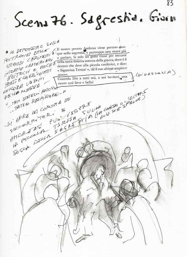 Il silenzio che sperava di trovare nella grande steppa russa, dove si era incaponito di andare per girare il nuovo film che aveva in mente sulla grande pianista russa Marija Judina e sulla notte in cui Stalin, sentito alla radio il suo «Concerto K 488 di Mozart» fece telefonare per aver subito il disco «ma il disco non esisteva e così, per non urtare il despota, decisero di farlo apposta recuperando nella notte musicisti e maestranze e lavorandoci fino all’alba».