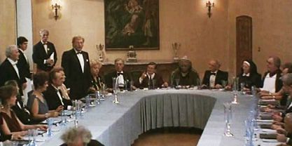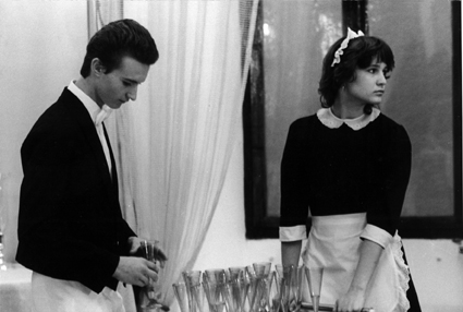 Six young men and women are whisked away to a mysterious, heavily surveilled castle in the mountains where they are being employed as the hired help for a swanky soiree, an elaborate dinner party for a coterie of intellectual and cultural elites presided over by an ancient, unsmiling noblewoman. But as the bizarre, oddly funereal night progresses, the young charges being to suspect there is something fishy going on—and it’s not just the enormous, grotesque flounder being served as the centerpiece. A subversive, Buñuelian send-up of one of Olmi’s recurring concerns—the conditioning of young people for the labor force—Long Live the Lady! is a rich and strange feast indeed. 35mm print from Istituto Luce Cinecittà.