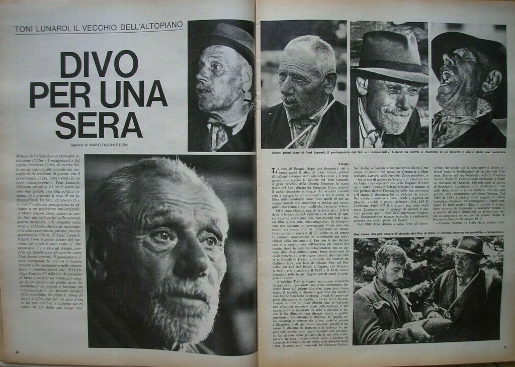 Girò L’albero degli zoccoli, forse il suo capolavoro poetico col quale conquistò Cannes e la fama mondiale, partendo dai racconti che leggeva ai suoi bambini. Parlavano della sua infanzia e «loro ascoltavano queste storie come se appartenessero a un mondo lunare: le veglie nella stalla, il lavoro, il rapporto d’affetto con gli animali. Ne erano estasiati». A chi levava il sopracciglio parlando d’«una operazione nostalgica» diceva che sì, narrando di storie «sue» le accarezzava «con un po’ di «tenerezza» ma «nostalgia non significa rimpianto». Se non per la «profonda solidarietà tra gli uomini» di quel mondo contadino perché, «come diceva Giovanni XXIII, solo i poveri sanno capire i poveri».