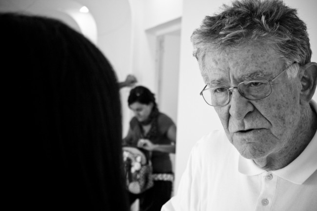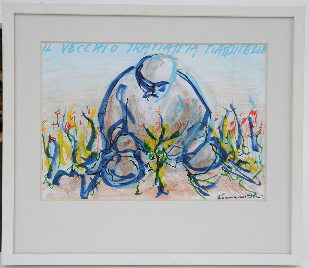 “Il futuro è una pagina bianca che vorrei avere ogni giorno a disposizione per non scriverci nulla, per un bisogno di totale libertà. Se vi tracciassi anche solo un segno, sarei condizionato dalle conoscenze che ho accumulato nella vita, mentre voglio essere libero come il bambino, quando nella prima infanzia non ha consapevolezza della realtà che avverte solo con l’olfatto. Come Adamo, prima che incominciasse a dare un nome alle cose. Un bicchiere, ad esempio, è un oggetto di cui tutti conosciamo la qualità e l’entità, ma prima ancora quel bicchiere è la nostra galassia, dentro ci vedo l’universo intero. È un bel gioco che faccio ogni giorno. Aver voglia di giocare a ottant’anni è già un bell’augurio.” E.O.