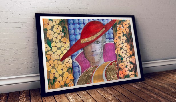 “ATTRICE IN COSTUME DI SCENA” – STAMPA NUMERATA 1/100 – AUTOGRAFATA – CARTA MODIGLIANI NEVE GR.320 DA ORIGINALE ACQUERELLO, CHINA E FOGLIE ORO. EURO 500 (spedizione compresa in Italia)