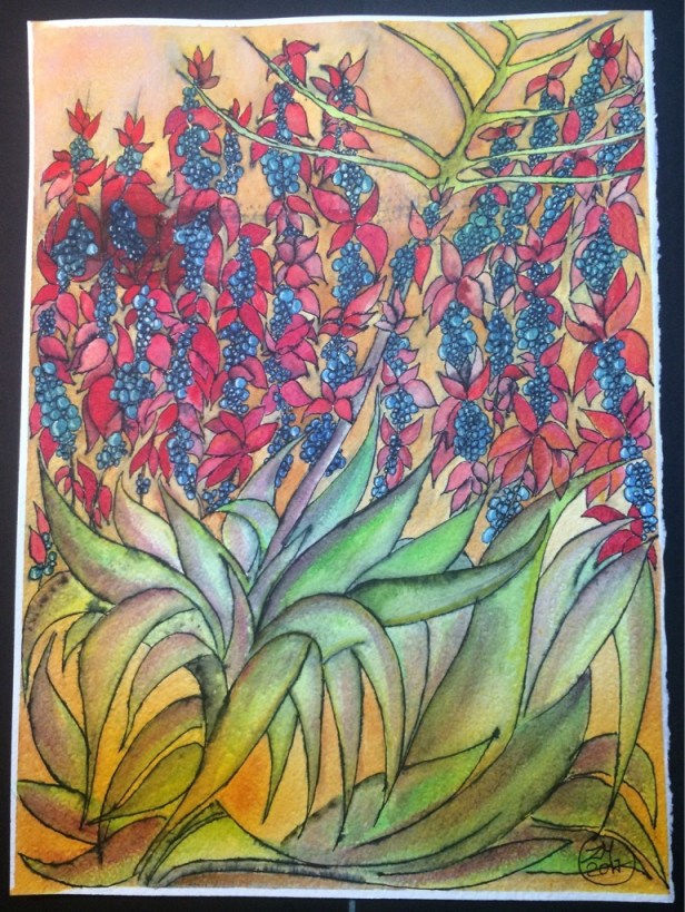 “ALOE” – STAMPA NUMERATA 1/100 – AUTOGRAFATA – CARTA MODIGLIANI NEVE GR.320 DA ORIGINALE ACQUERELLO, CHINA E FOGLIE ORO. EURO 700 (spedizione compresa in Italia)