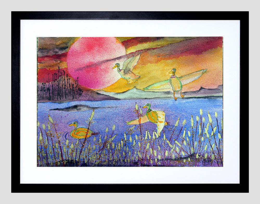 “WILD GEESE” – ACQUERELLO, CHINA. ORIGINALE IN COLLEZIONE PRIVATA – NON IN VENDITA