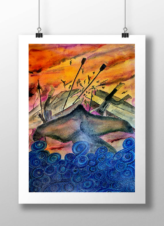 “MELOGRANO”. ACQUERELLO, CHINA, ACRILICO, CHARCOAL, DIGITAL FLARE – ORIGINALE IN COLLEZIONE PRIVATA – NON IN VENDITA