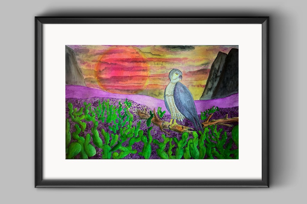 FALCO PELLEGRINO” – STAMPA NUMERATA 1/100 – AUTOGRAFATA – CARTA MODIGLIANI NEVE GR.320 DA ORIGINALE ACQUERELLO, CHINA. EURO 500 (spedizione compresa in Italia)