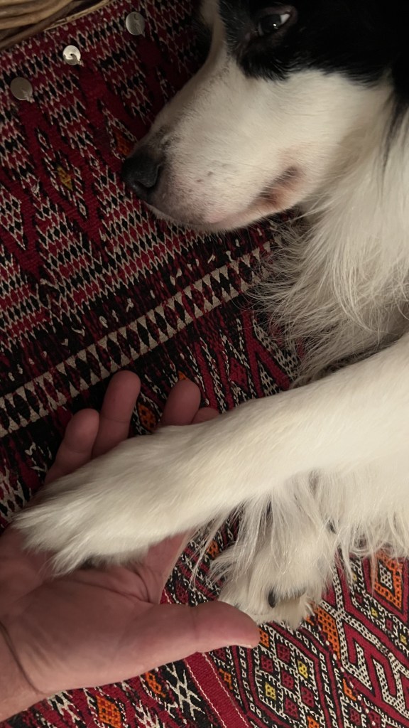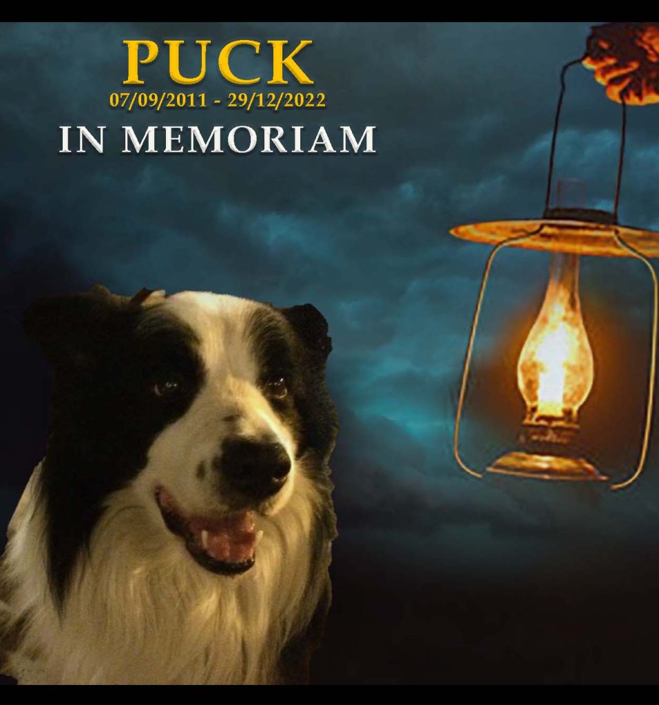 Ovviamente esistono tantissime altre fotografie e video. Aggiungo solo le ultime, con Puck già sofferente, sfinito dall’emangiosarcoma cutaneo, terribile tumore che dalla sua scoperta gli ha lasciato meno di un mese di sopravvivenza. All’alba del 29 dicembre 2022 colpito da una nuova, devastante emorragia Puck non ce l’ha più fatta e alle 10,30 del mattino ha concluso la sua serena esistenza. Ora e giorno infausti che non dimenticherò ma, nonostante il senso di perdita schiacciante, da spezzare il cuore (non esagero) sono certo che non è stato un addio. Un giorno ci incontreremo di nuovo da qualche parte e allora sì che sarà una grande festa e la codona bianca tornerà a scodinzolare.